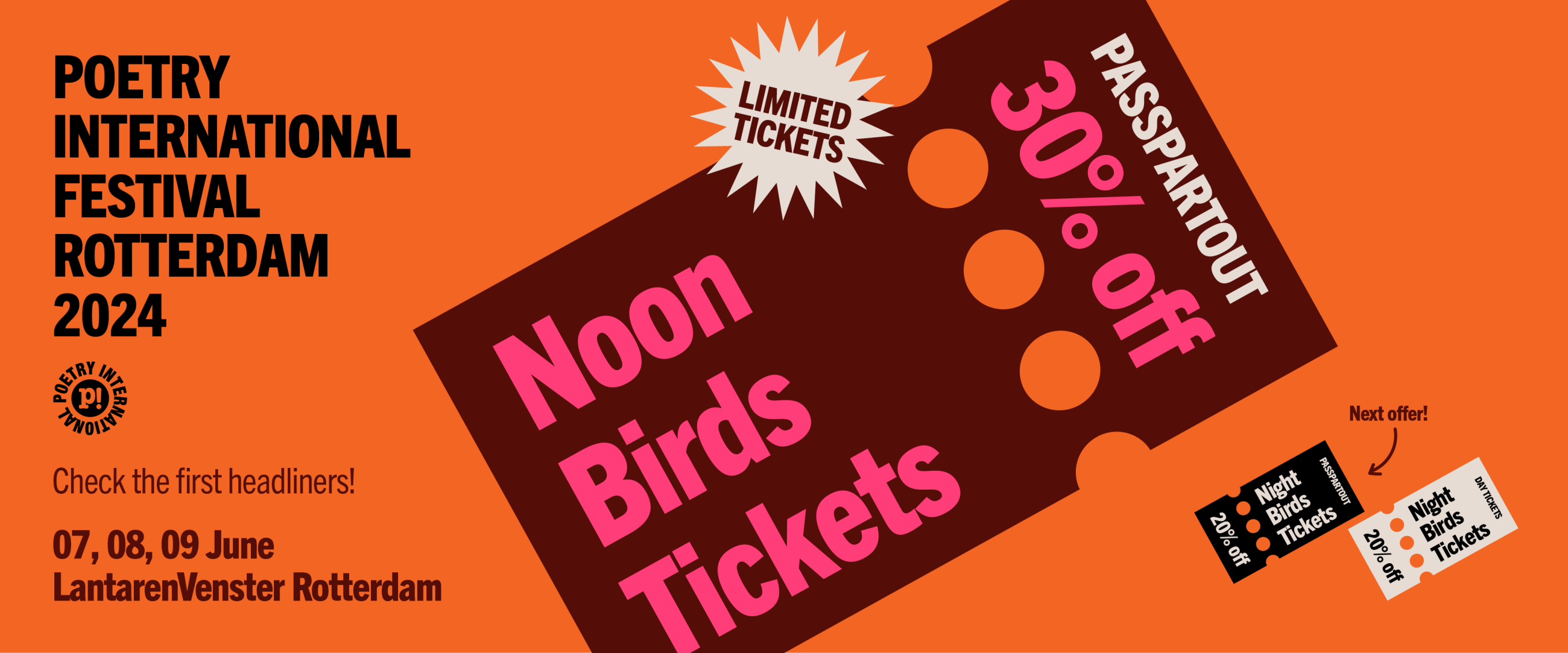 From June 7 to 9, the 54th Poetry International Festival Rotterdam takes everything out of poetry and the poetic out of everything. With poets and spoken word artists from all over the world and partners from far and near, the festival presents unique poetry performances, theme specials, workshops, interviews and interactive programs. This year we multiply the power of poetry, by combining poetry – as you know it – with poetry you at first glance wouldn’t recognize as such. Brace yourself for a double dose of poetic brilliance as we merge the familiar with the unfamiliar. Come and watch the best poets from the world step beyond the boundaries of traditional literary expression and engage with artists from different fields like fashion, comics, therapy, karaoke, philosophy and much more. Together with you, we are going to push the boundaries of what poetry can be!