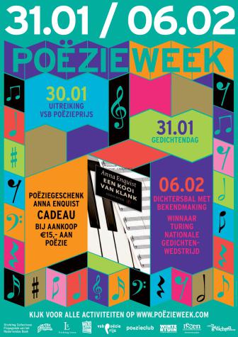 Poetry Week is a Dutch-Flemish collaboration between Poëzieclub, Poetry International, Stichting Lezen Vlaanderen, Stichting Lezen Nederland, Poëziecentrum, Boek.be and Stichting CPNB.
