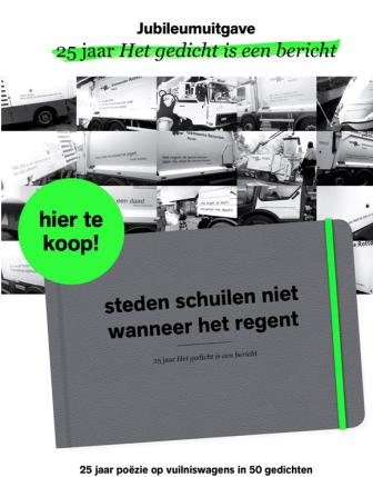 Everyone in Rotterdam knows them: the verses of poetry on the sides of the city’s cleaning and garbage-collection vehicles. The City Maintenance trucks have been doing more than removing household refuse and cleaning the Binnenrotte after the market. Ever since 1988 they have also brought exquisite poetry into Rotterdam homes. The verses on these trucks are taken from the poets who perform at the annual Poetry International Festival. This project, ‘Het gedicht is een bericht’ (The poem is a message), owes its name to the eponymous poem by Jules Deelder. It was one of the first verses to be inscribed on the trucks.