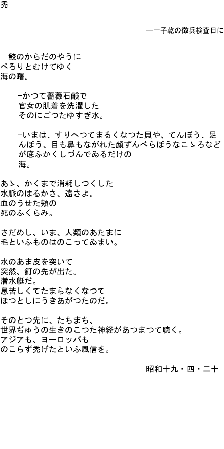 © Translation: 2008, Hiroaki Sato. Please note that editorial changes made to this translation have not yet been approved by the translator.