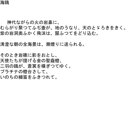 二羽の鴎が、蒼冥を横ぎつてゆく。