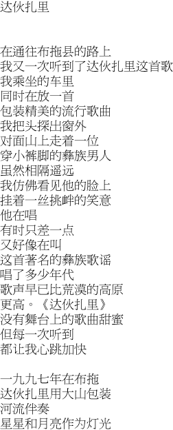 在通往布拖县的路上 我又一次听到了达伙扎里这首歌