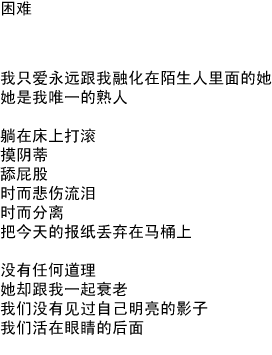 I love only she who dissolves forever with me inside strangersshe is my only friend