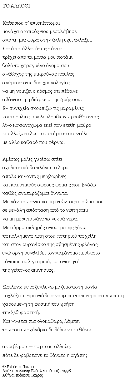 Publisher: Poetry Greece 2 p. 20-23, Corfu, 2000