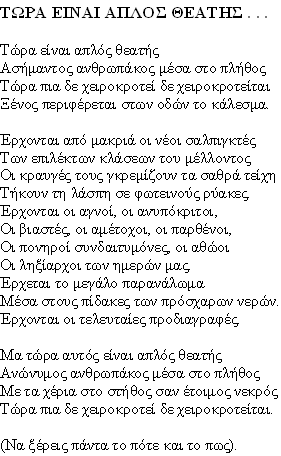 Now he is a simple spectatorAn insignificant fellow in the crowd