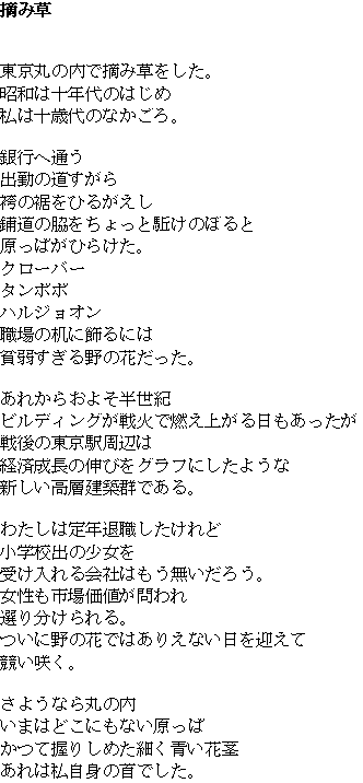 I plucked wildflowers at Marunouchi in Tokyo.At the end of the 1920’s