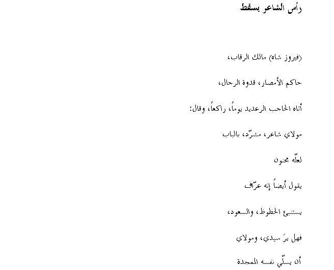 One day, the faint-hearted chamberlainCame to Fayrouz Shah,
