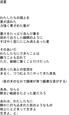 (夜の木のなかで韻律が育つ厳粛な音がする)