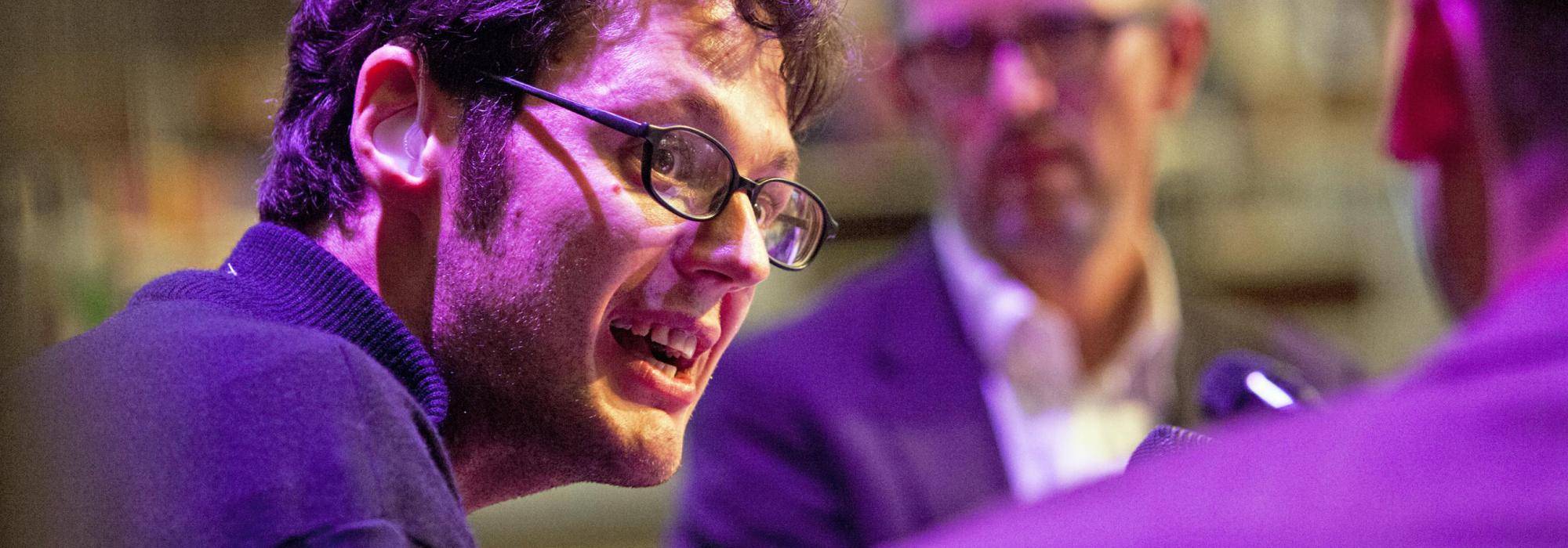 "Het alledaagse is prachtig en in alle eerlijkheid, het is alles wat we hebben." Voor Ilya Kaminsky gaat poëzie over het creëren van een parallelle werkelijkheid en daarmee over het scheppen van vrijheid. Hij werd in 1977 geboren in Odessa in de voormalige Sovjet-Unie (nu Oekraïne) maar vertrok in 1993 met zijn familie naar de VS. Net als bij Raymond Antrobus, vorig jaar op het festival, werd in zijn vroege jeugd doofheid over het hoofd gezien. Kaminsky's personages zijn ook vaak doof; en toch, ze vrijen en dansen tegen de klippen op, niet horend wat er over hen gezegd wordt en als er bevelen worden gegeven, kunnen ze die niet verstaan. Kaminsky heeft een scherp oog voor de absurditeit van het bestaan, schrijft onverbloemd over grimmig- en gruwelijkheden, maar blijft als observator altijd betrokken. Liefdevol en optimistisch toont zijn poëzie de andere wang. Geweld en dwang worden beantwoord met liefde, dans en muziek. Zijn tweede bundel Deaf Republic wordt gezien als "een hedendaags epos (…) een volkomen buitengewoon boek." Schrijver Garth Greenwell noemt de dichter "de meest briljante van zijn generatie, een van de weinige genieën ter wereld”.