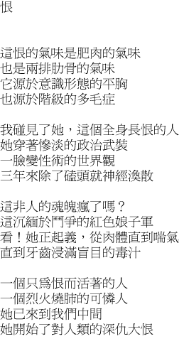 這恨的氣味是肥肉的氣味 也是兩排肋骨的氣味