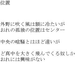 The wind in the outfield is cold on my cheeks andI am a centerfielder, all alone