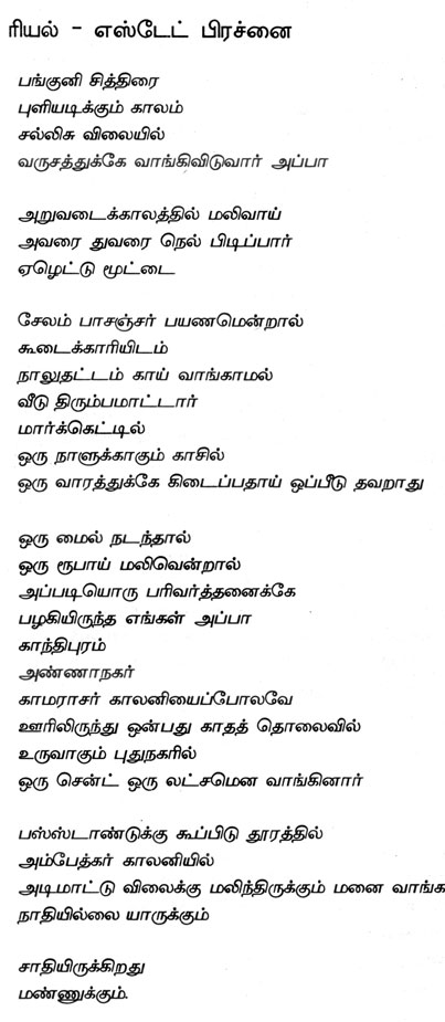 From: The Rapids of A Great River: The Penguin Book of Tamil Poetry (co-edited by Lakshmi Holmstrom, Subashree Krishnaswamy, K. Srilata)
