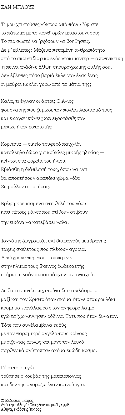 Publisher: Poetry Greece 2 pp. 20-23, Corfu, 2000