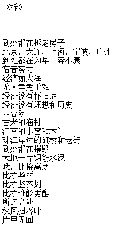everywhere they are demolishing old housesin Beijing, Dalian, Shanghai, Ningbo, Guangzhou