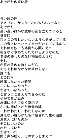 長い旅の途中アメリカ、サンタ・フェのバスルームで